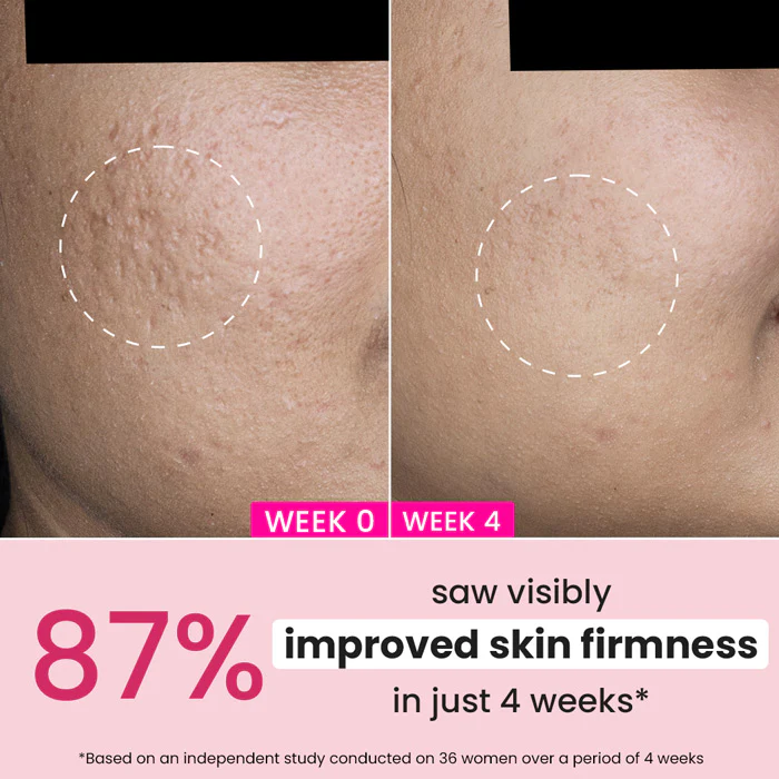 - Powered by multi-peptides, it boosts collagen to smooth wrinkles & fine lines.