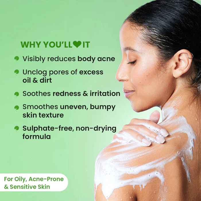 - Visibly reduces body acne, soothes inflammation & fades dark spots